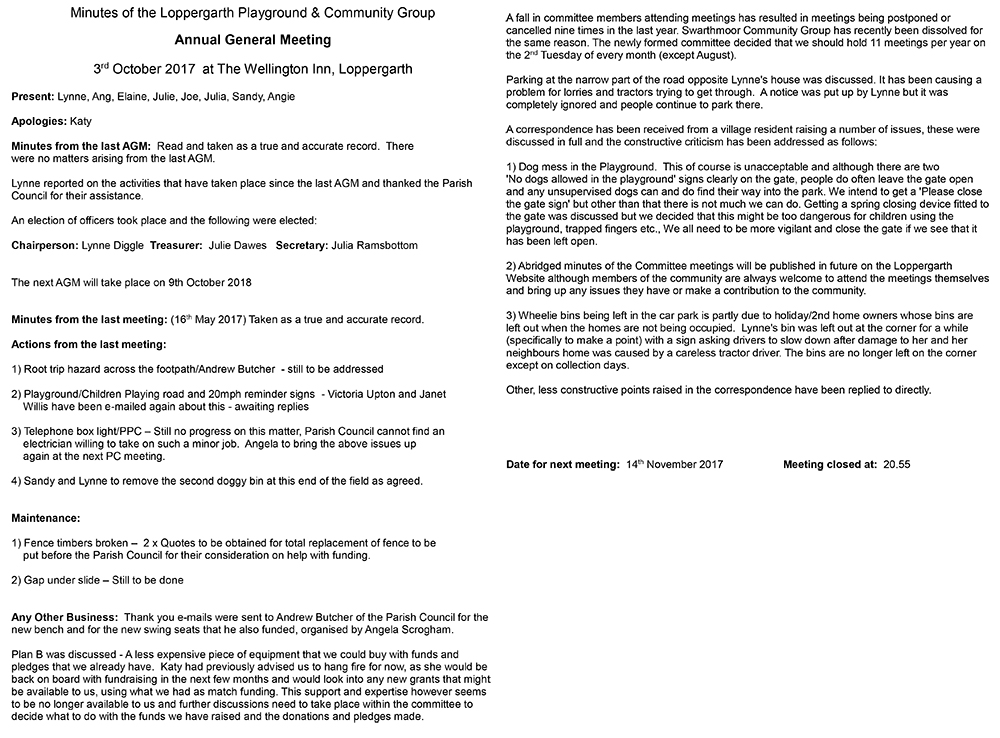 Community Meeting Minutes - 14th November 2017